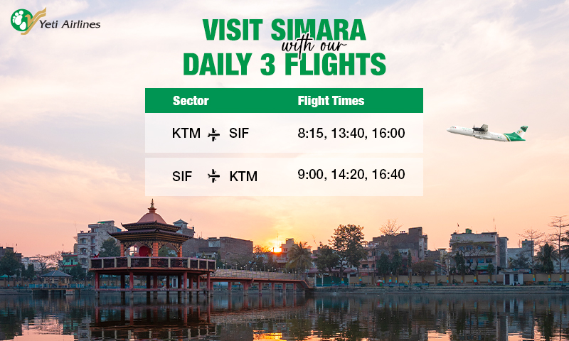 Find cheap flights from Kathmandu to Simara or Simara to Kathmandu with Yeti Airline. Book now to get the best airline deals. Choose Yeti Airlines for Your Next Journey!